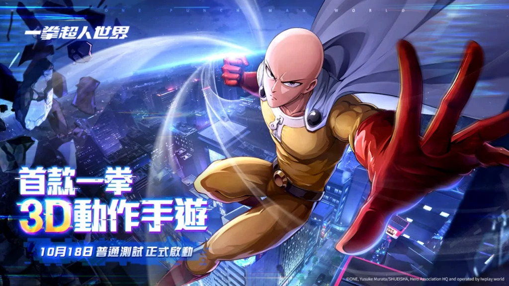 由艾玩天地代理,完美世界遊戲旗下 T3 Studio 所研發的首款一拳超人 3D動作跨平臺手機遊戲新作《一拳超人:世界》於今(9/20)宣佈將於10月18日迎來台港澳地區首次遊戲普通測試,將限量開放包含iOS、 Android及PC多平台共1000個名額搶先測試,目前同步進行招募中,官方也將於10月11日公佈獲得普通測試資格的玩家名單!