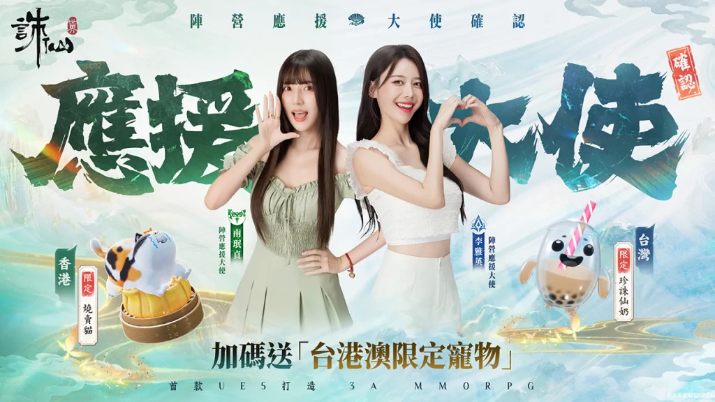 由Unreal Engine 5打造的3A級仙俠MMORPG《誅仙世界》於今(5月23日)宣佈將於6月5日重磅上市,預告將採用中國大陸4月最新優化版本,作為遊戲正式上市版本基礎,同時公開台港澳地區版本優化與獨家內容,帶給玩家優質的遊戲體驗與服務。營運團隊本日更邀請人氣啦啦隊隊員:李雅英、南珉貞擔任《誅仙世界》陣營應援大使,並搶先釋出形象宣傳圖,同時預告將陸續揭曉更多合作內容。為歡慶兩位陣營應援大使亮相,營運團隊宣佈加碼送出台港澳地區限定-珍誅仙奶或燒賣貓自選寵物。本日同步公開超萌寵物系統及時裝染色系統。