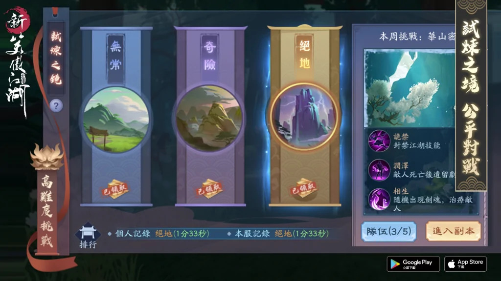 在本次更新後,玩家將可以自由在遊戲內裝配第二套絕學,不論是回血的清心普善咒,還是施展增加各類屬性的易筋經,玩家的戰鬥自由度將大幅提升。此外也提供了試煉之境中公平試煉的玩法,只要進入公平試煉,全部玩家將會調整為系統給予的平衡數值,考驗玩家操作的硬實力,挑戰最速通關獲得更好的獎勵,就是現在!