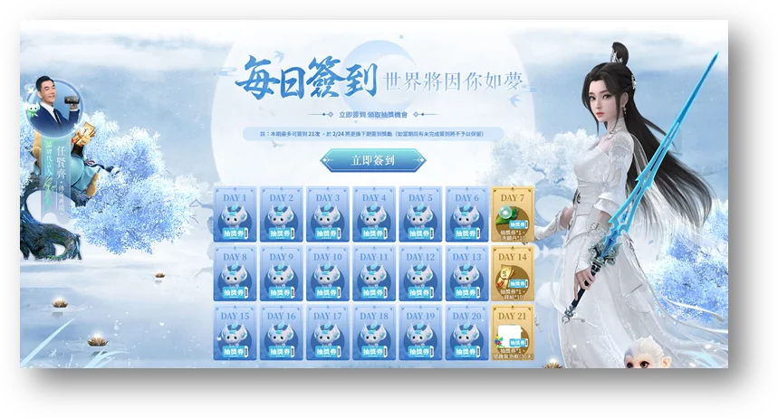 封測期間,每天都將給參與封測的的玩家發放元寶福利,助力仙途!