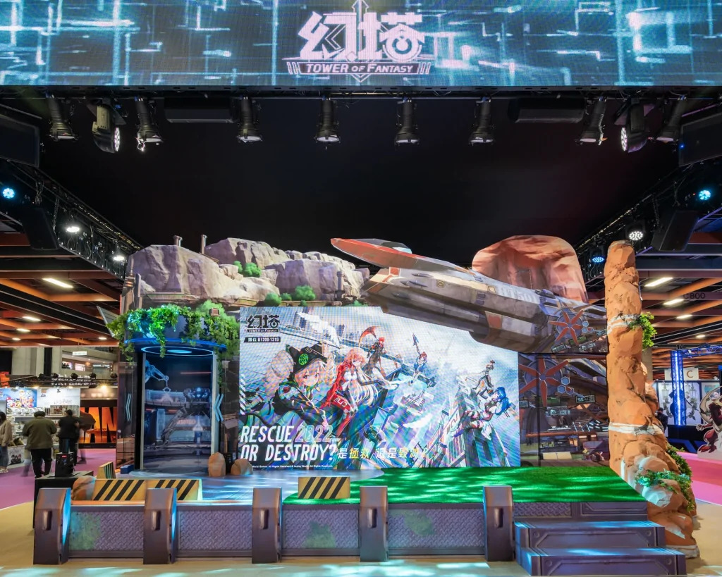 《幻塔》展區主舞台以拓荒者們進入遊戲後的冒險起點「星島」為主題,真實還原遊戲內的星島避難所,聳立的伯利恆號及以實驗艙改造而成的旋轉舞台等,玩家們可體驗遊戲中拓荒者們與夥伴一起守護星島避難所的臨場感,建構遊戲內二次元開放世界場景,打造最具美感的打卡景點,完成粉絲團打卡簽到任務更可獲得限量周邊好禮。
