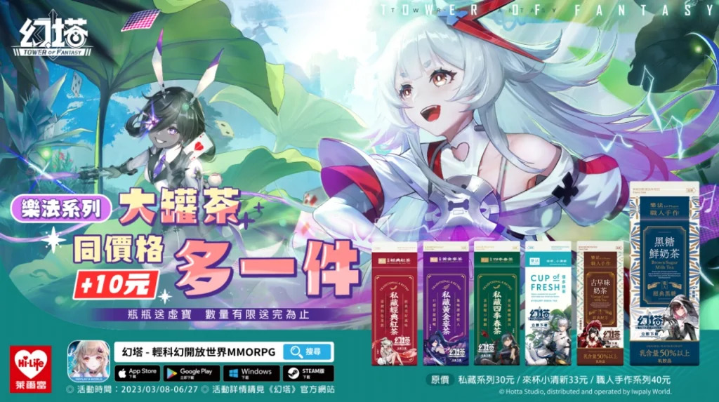 即日起至2023年6月27日,拓荒者只要到全台萊爾富超商實體門市購買樂法系列貼有《幻塔》貼紙的大罐茶指定飲品,就有機會獲得赤核、金核、特種憑證、金幣等豐富虛寶獎勵。拓荒者們趕快到萊爾富超商購買樂法指定飲品,既能享受好喝的飲料也能領取虛寶獎勵!