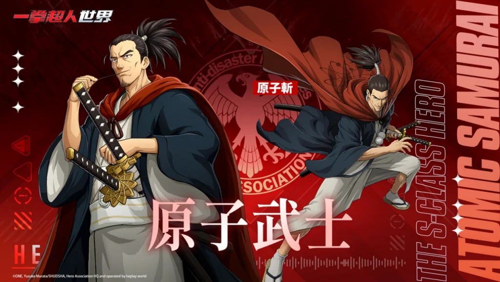 身為劍道宗師的原子武士是《一拳超人:世界》中戰鬥表現出色的S級英雄。在戰鬥過程中,原子武士可按照當前戰況,使用主動攻擊的劍道式或閃避攻勢的居合式。集滿角色奧義值時,更能使出原子武士的絕技-原子斬,將敵人一舉擊潰!