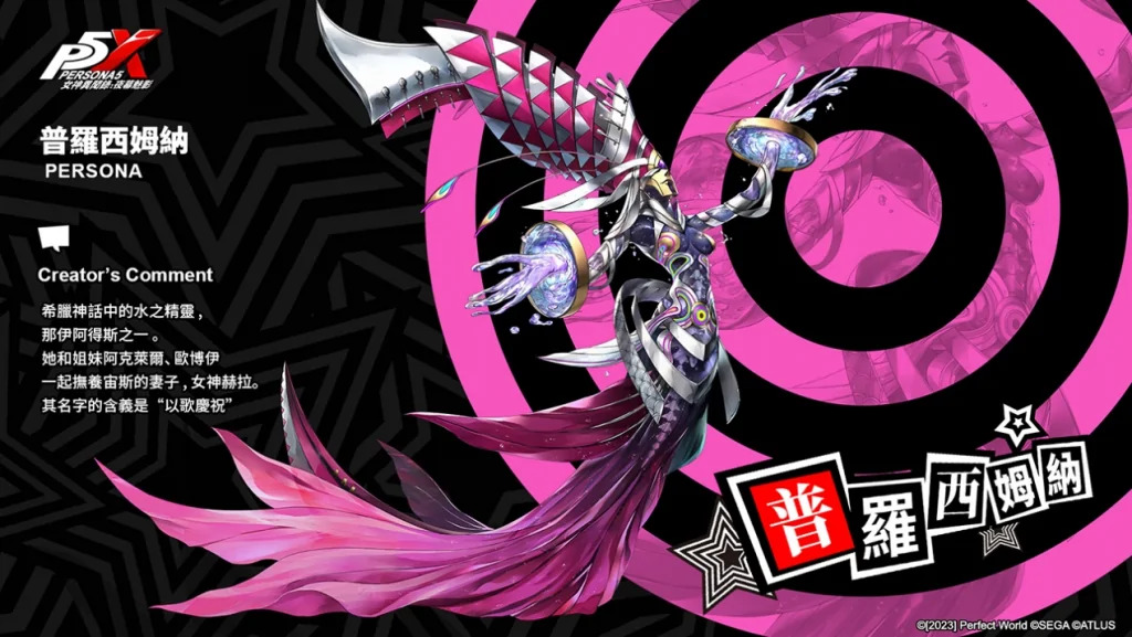 的女生,穩重的性格總是經常主動照顧身邊的人。初始人格面具II為「普羅西姆納」。其為希臘神話中的水之精靈,那伊阿得斯之一。她和姐妹阿克萊爾、歐博伊一起撫養宙斯的妻子,女神赫拉。其名字的含義是“以歌慶祝”。