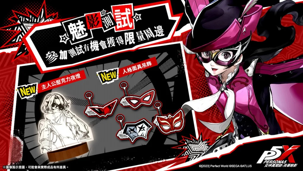 由 SEGA 正版授權、完美世界遊戲旗下黑羽工作室所研發,艾玩天地代理的《女神異聞錄5》IP首款手遊《女神異聞錄:夜幕魅影》(後簡稱P5X)於今(12月22日)宣佈將於2024/1/22展開「魅影測試」,將招募限量1000名玩家搶先體驗全新章節劇情及挑戰心軌擇行等新增玩法。原作心之怪盜團人氣角色「摩爾加納」也將於P5X中協同玩家在殿堂經歷試煉與挑戰。同時本週六日(12/23、12/24)將於香港「Rainbow Gala30同人展」中首度公開亮相。玩家到現場共襄盛舉,即有機會獲得「魅影測試」測試資格及限量周邊!事前登錄活動同步進行中,參加送稀有怪盜偶像「野毛朋子」,並有機會獲得遊戲主機及P3R盒裝限定版、P5T NS普通盒裝版,同時官方更準備了包含限量周邊盲盒、角色面具吊飾、主人公夜燈等多樣豐富P5X實體週邊,只要參加官方活動即有機會獲得!