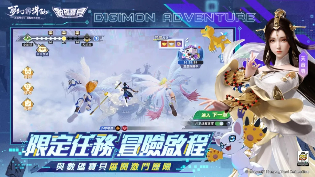 5月17日更將開啟全新伺服器「Digimon」。為歡慶聯動改版及全新伺服器開啟,營運團隊準備六大福利回饋玩家。玩家只需完成各項指定任務,就能獲得“蜀道山”永久坐騎、幻獸刮刮樂免費送,且有機會獲得聯動限定“天使獸”,多項豐富虛寶獎勵待玩家前來領取。