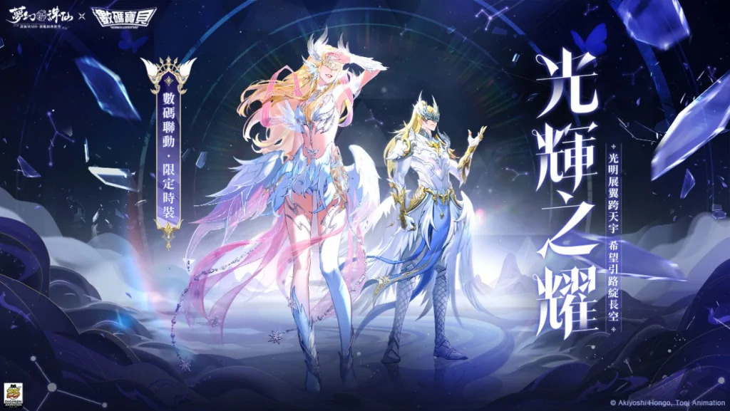 營運團隊也特別為本次聯動打造限定時裝-「光輝之耀」,設計靈感源自《數碼寶貝》人氣角色“天使獸”及“天女獸”。營運團隊在限定時裝加入對經典角色的致敬,霜白色的綢緞及靈動的羽翼設計,種種細節都散發著天使獸及天女獸霸氣迷人卻又神秘的氣息。