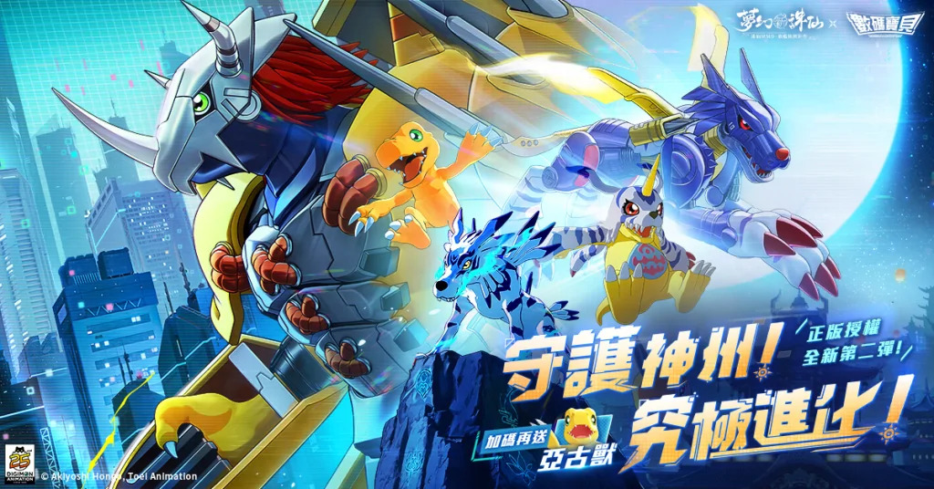 《夢幻新誅仙》手遊於今(6月20日)宣佈與《數碼寶貝》聯動第二彈重磅開啟,在玩家之間極具人氣的限定幻獸-亞古獸、限定坐騎-加魯魯獸及限定靈魅-獨角獸也正式加入誅仙大世界。營運團隊也預告近期將推出全新聯動限定時裝,讓玩家換上新裝與數碼寶貝共同守護神州!為歡慶本次聯動,即日起登入《夢幻新誅仙》即可獲得限定幻獸-亞古獸。