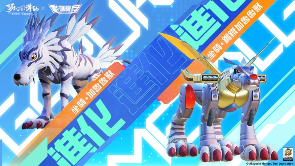 《數碼寶貝》中智力超群的經典角色-加魯魯獸,於本次聯動也化身為《夢幻新誅仙》的全新限定坐騎,更能幻化成“究極進化型:鋼鐵加魯魯”;個性貪玩的獨角獸也將加入本次聯動,化身為限定靈魅,最終可進化成加布獸,伴玩家闖蕩誅仙大世界展開更多全新冒險!