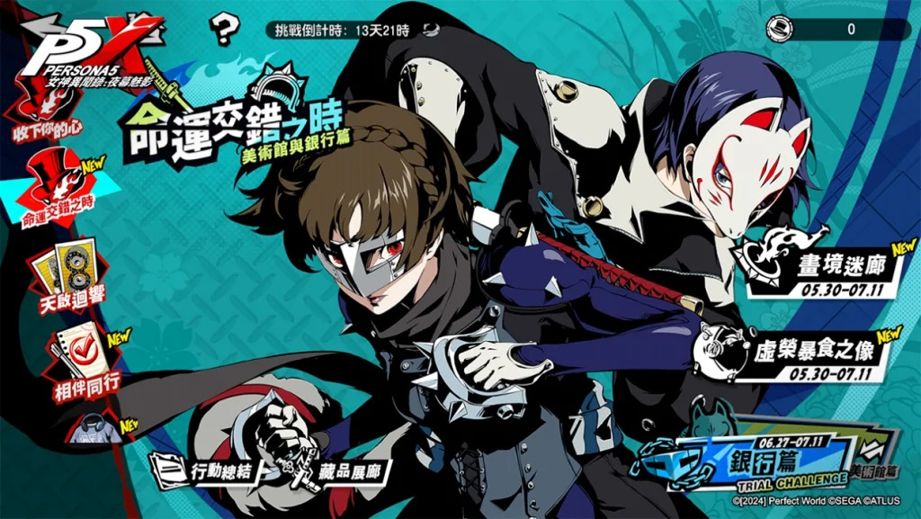 全新劇情將隨著1.3.3版本的到來加入P5X中。玩家與怪盜團成員在喜多川祐介的協助下順利奪取殿堂核心,奇怪的是殿堂並未因此坍塌。在路菲爾的引導下,眾人來到一個酷似銀行的地方,在這裡玩家將發現走失的新井素羽正與一名身穿藍黑色服裝的女性爭執不下。完結這次事件的關鍵,似乎是要同時奪取此處的核心,更多的新篇章細節待玩家前來一探究竟!