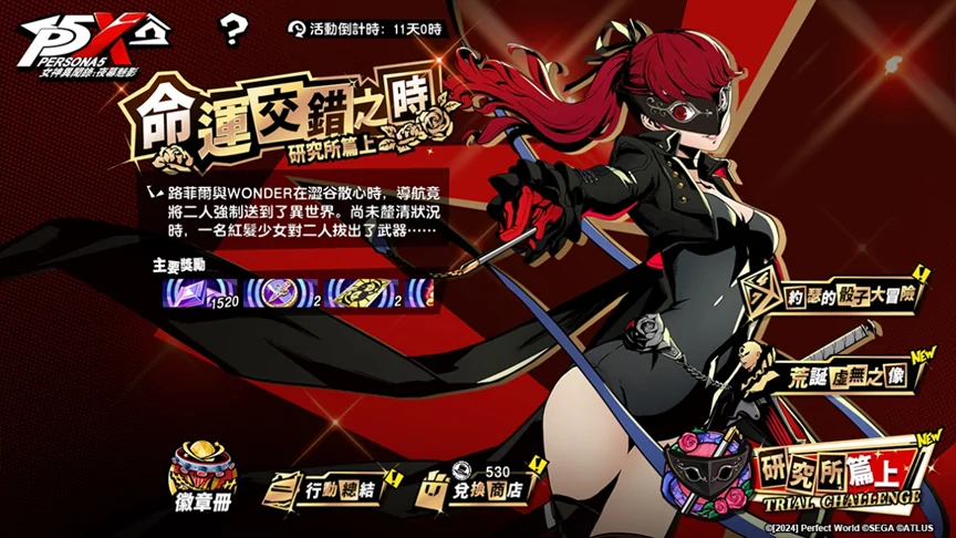 P5X與P5R聯動限定劇情上線,關於路菲爾神秘的夢境及跟JOKER、MONA一起行動的紅髮女怪盜所遇到的陰影究竟是敵是友?在疑似殿堂的神秘空間裡,玩家也將遇到全新BOSS-荒誕虛無之像,這一次玩家還將面臨什麼樣的挑戰呢?