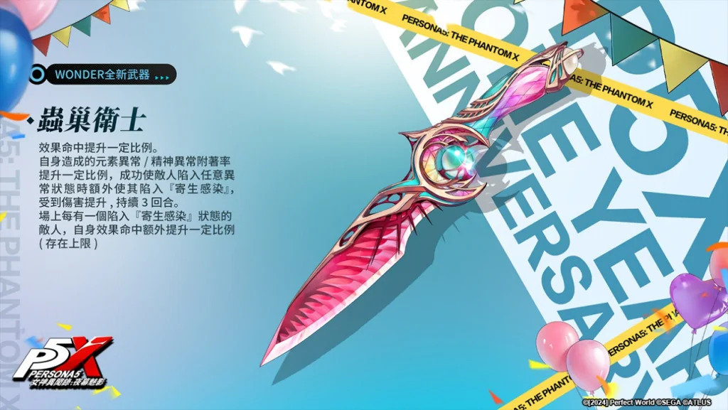 《女神異聞錄:夜幕魅影》(後簡稱P5X)於今(4月17日)迎來遊戲上市一週年慶典,感謝玩家一直以來的支持,即日起,立即登入P5X即可獲得人氣五星限定自選角色。全新4.0版本-假面役者的憂鬱也重磅上線,解鎖新主線劇情、新殿堂及全新五星解明怪盜角色-長尾愛歌等豐富遊戲內容。
