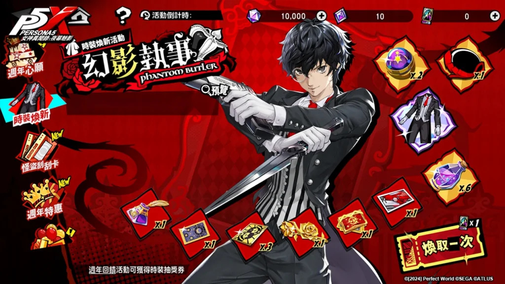此外,營運團隊更邀請全服玩家一起參與週年心願Party,集氣成功就能解鎖包含未來之命運及橙色隨機啟示卡包等全服獎勵,還有豐富的額外個人虛寶獎勵。完成每日簽到的玩家,還能獲得既定之命運及既定之硬幣等虛寶!現在就登入P5X,一同參與週年慶盛典吧!