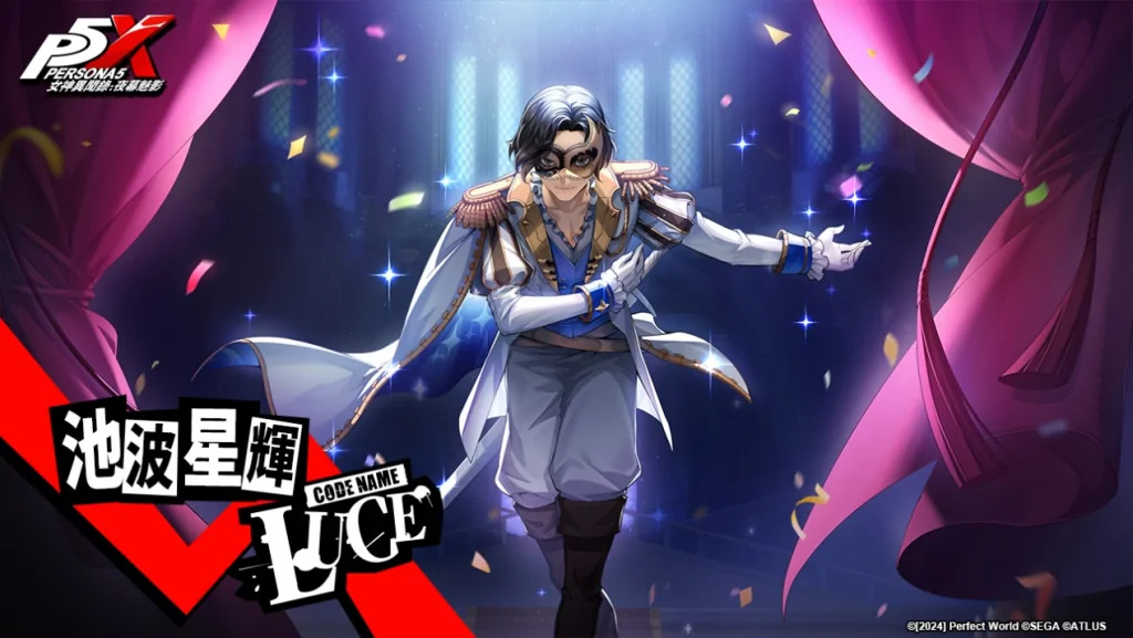 全新劇情篇章也將迎來四星祝福屬性怪盜-池波星輝(CV:江口拓也)這位新成員加入怪盜團!擁有義大利血統的池波星輝就讀於東京都立軌雅的高中三年級學生,父母皆是知名演員,他也是一名舞台劇演員,同時加入軌雅高校戲劇部。因其出眾的外表而被娛樂雜誌報導,逐漸受到矚目。在學園祭籌備過程中,與WONDER相識,因某個事件覺醒了人格面具。其代號為「LUCE」,初始人格面具是「吉諾」。