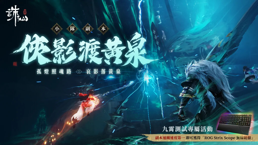 目前遊戲正在進行九霄測試招募倒數階段,並將於2025/5/15展開九霄測試,測試期間玩家組隊通關「寒潭戾影-困難」,即可於遊戲上市時獲得雲裳點中集*10;通關「俠影渡黃泉-困難」並獲得第一名的隊伍成員更可贏得ROG Strix Scope無線鍵盤;於測試結束後,按照雅探榜排行第一的玩家還能獲得ROG Desire Core電競椅!玩家不僅能透過九霄測試感受沉浸式遊戲體驗,還能把夢幻好禮帶回家!