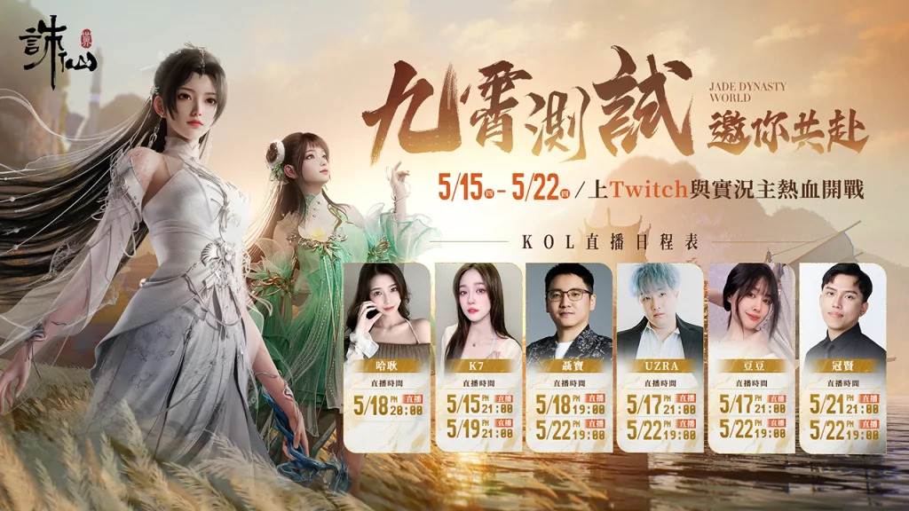 圖說:官方特別邀請實況主-哈耿、K7、聶寶、UZRA、豆豆及冠賢於九霄測試期間與玩家們共赴《誅仙世界》熱血開戰!