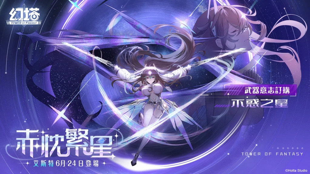 艾斯特的專屬武器-雙星是在隱蔽、無聲作戰時可起到重要作用的標準冷兵器。運營團隊也宣佈於2025年6月24日開啟艾斯特意志訂購活動,讓授權者有機會與艾斯特一起探索《幻塔》大世界。