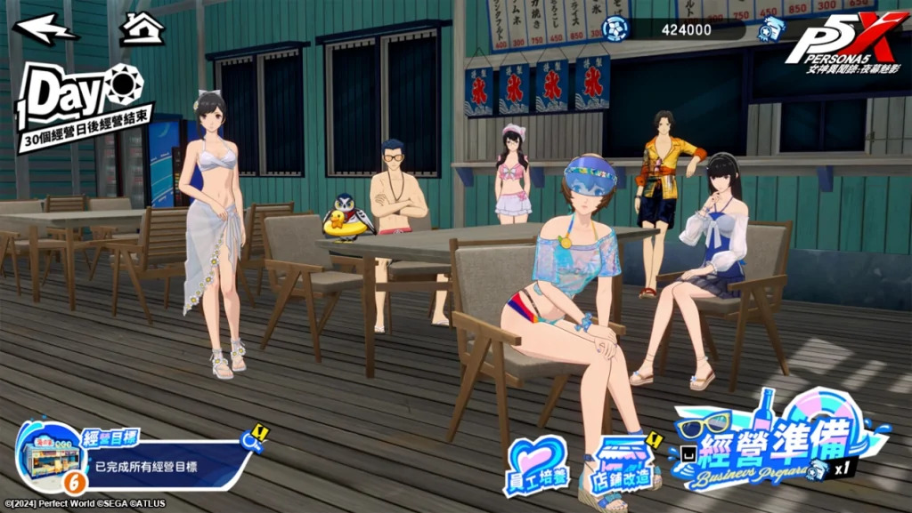 玩家作為海之家的管理者之一,每個營業日都能選擇處理多個經營事件,成功應對事件不僅能提升店鋪屬性,還能獲得當日增益效果,從而賺取更高的營業額。此外,在經營過程中培養伙伴能力也十分重要,透過解鎖更多有趣經營事件,讓代里海岸及海之家更加繁榮熱鬧!細心規劃每天的經營策略,合理分配伙伴工作及資源,一起帶領海之家走出困境,成為海濱最受歡迎的店鋪吧。