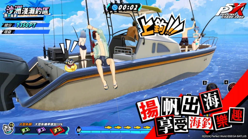 全新版限定活動-盛夏魚狩總動員同步開啟。開著遊艇駛向代里海岸附近的豐饒漁場,準備享受魚竿彎折及傳說魚王角力的酣暢時刻,享受每一次揮桿的瞬間。玩家將由三位夥伴陪同一起出海進行海釣,夥伴們將為玩家提供多種海釣增益效果。海釣結束後,還能與夥伴們拍照,記錄美好時刻。