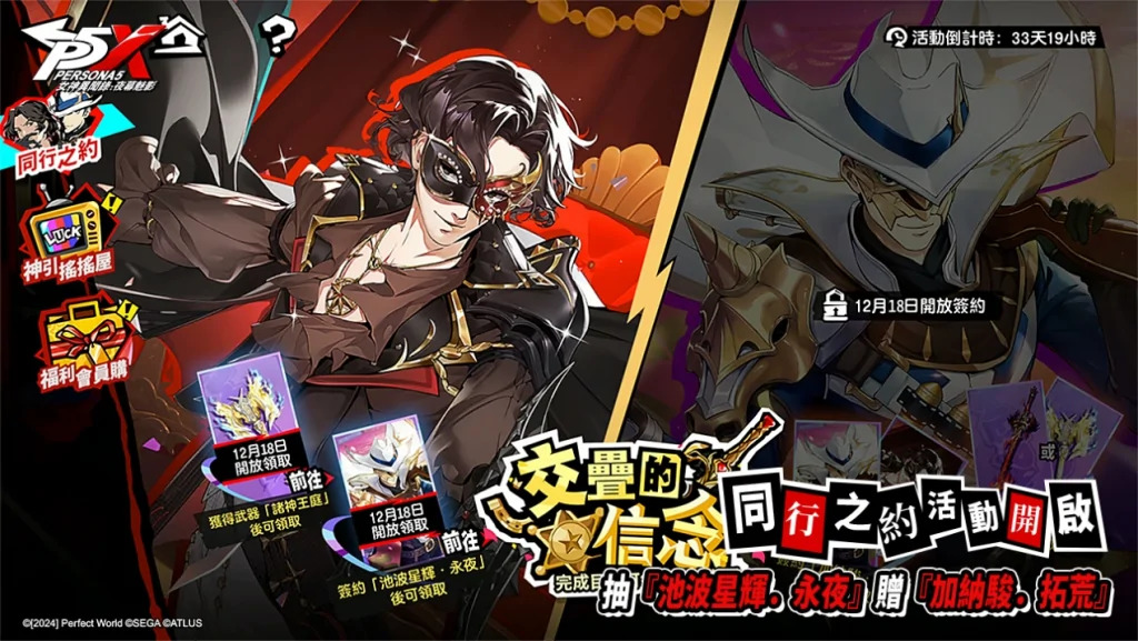 《女神異聞錄:夜幕魅影》(後簡稱P5X)本日(12月4日)宣佈全新4.7.1版本-假面役者的終演正式上線, 全新五星限定角色-池波星輝‧永夜本日登場,並加碼開啟抽一送一限時活動!第四章主線劇情也於本日同步開啟,待玩家前來一探究竟!此外,帥氣五星限定角色-加納駿‧拓荒及豐富的聖誕節限定活動也將於2025/12/18開啟,本日搶先釋出精彩內容,邀玩家共襄盛舉!