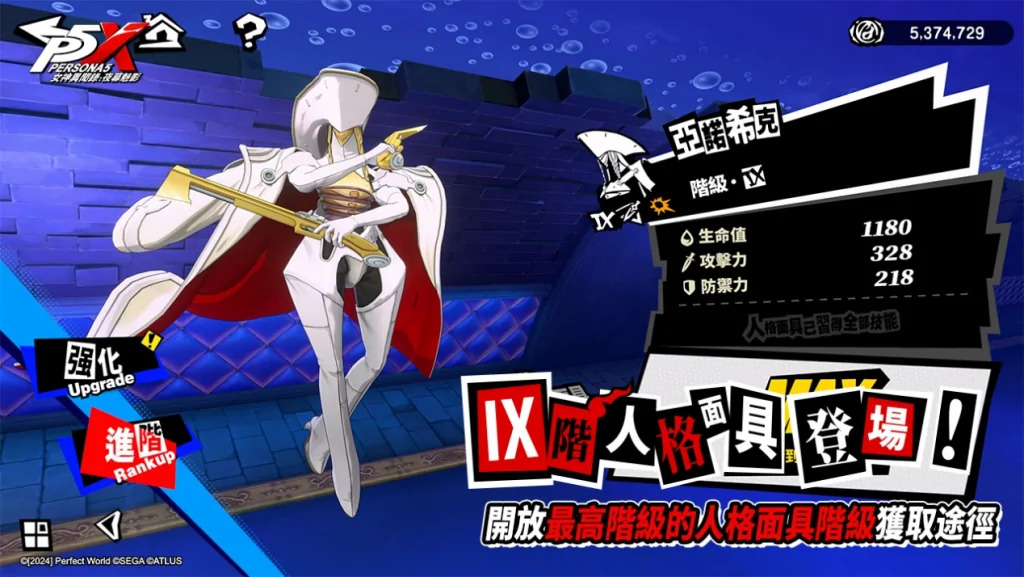 圖說:最高階級-IX階人格面具重磅開啟,玩家完成主線劇情任務即可將亞諾希克覺醒至IX階級。